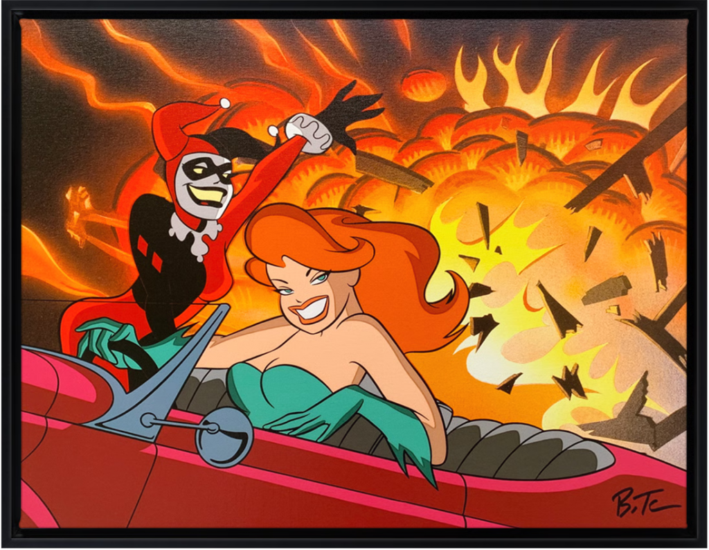 But here’s the really cool thing: this new release was not only created under the genius direction of the one and only Bruce Timm, but each and every one was signed by the man himself! And this is about as exclusive an edition as it gets — we’re talking only 100 pieces on canvas, baby! So, here’s your opportunity to get your hands on a piece of Harley and Ivy history! (And, oh, yeah, Batman history too.)